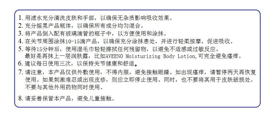 总之,“关节乐”是一种外敷型天然产品,采用独特的配方,可以通过多种方式帮助关节自我修复和保护。它的使用可以减轻疼痛、肿胀和僵硬,并促进软骨修复和再生。