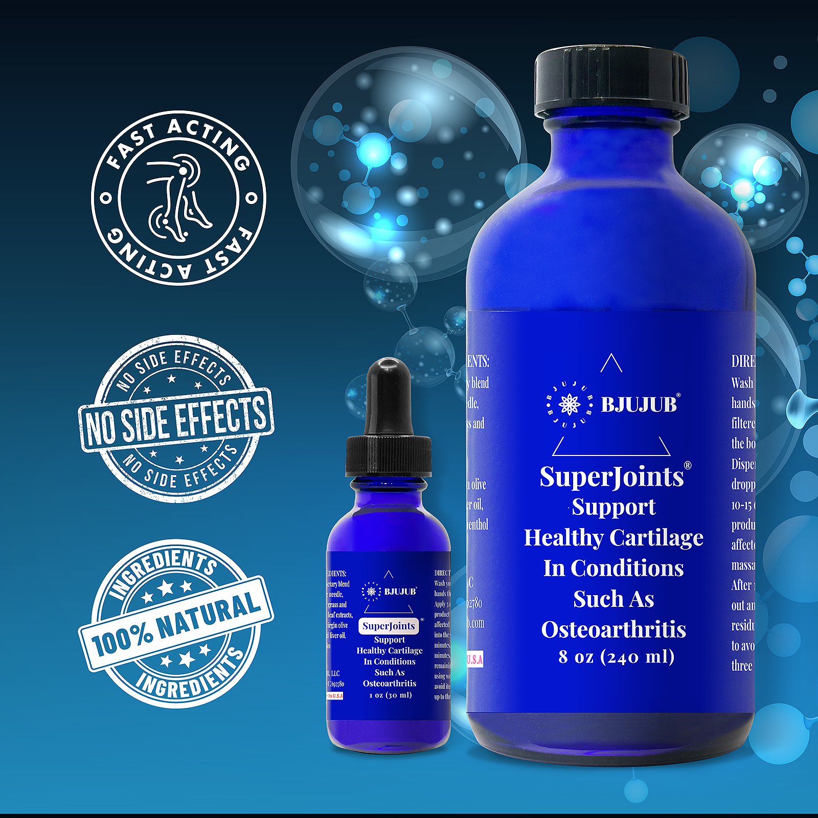 • 独特的配方中包含关节所需的特异生长因子、再生分子和全部微营养成分,可以通过多种方式帮助关节自我修复,包括提供必需的营养物质、刺激细胞生长和防止自由基损伤。